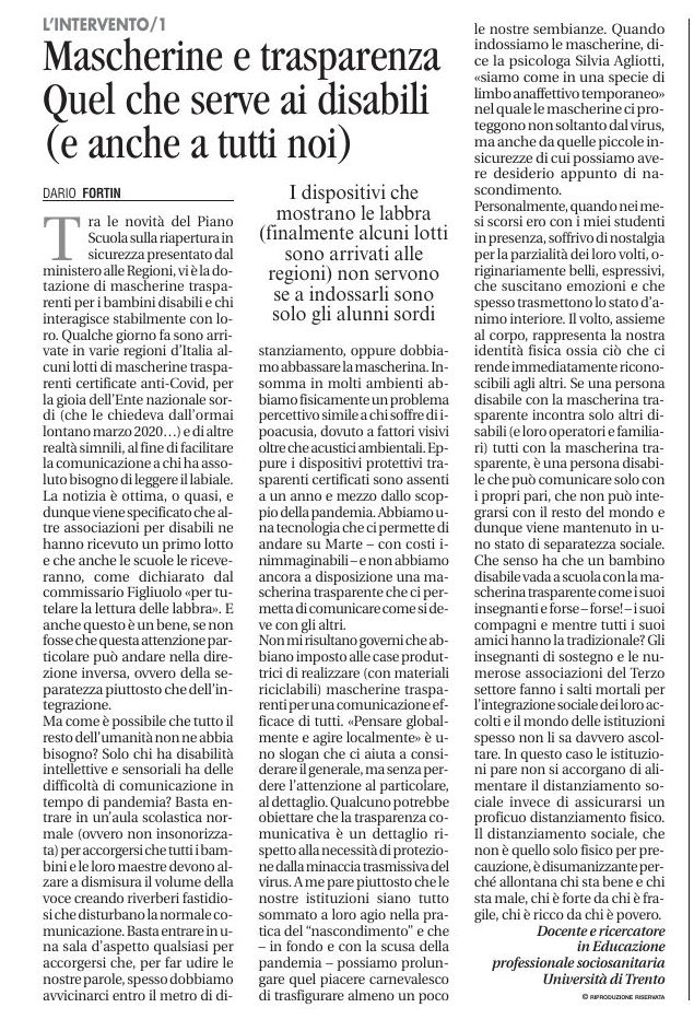 I dispositivi che mostrano le labbra (finalmente alcuni lotti sono arrivati alle regioni) non servono se a indossarli sono solo gli alunni sordi.