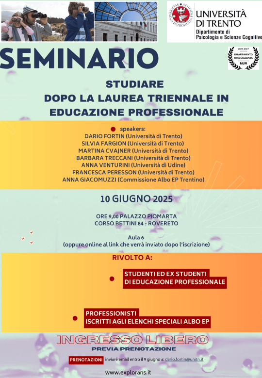 Ingresso libero con prenotazione, Online su prenotazione (MANDARE EMAIL a dario.fortin@unitn.it entro il 9 giugno)